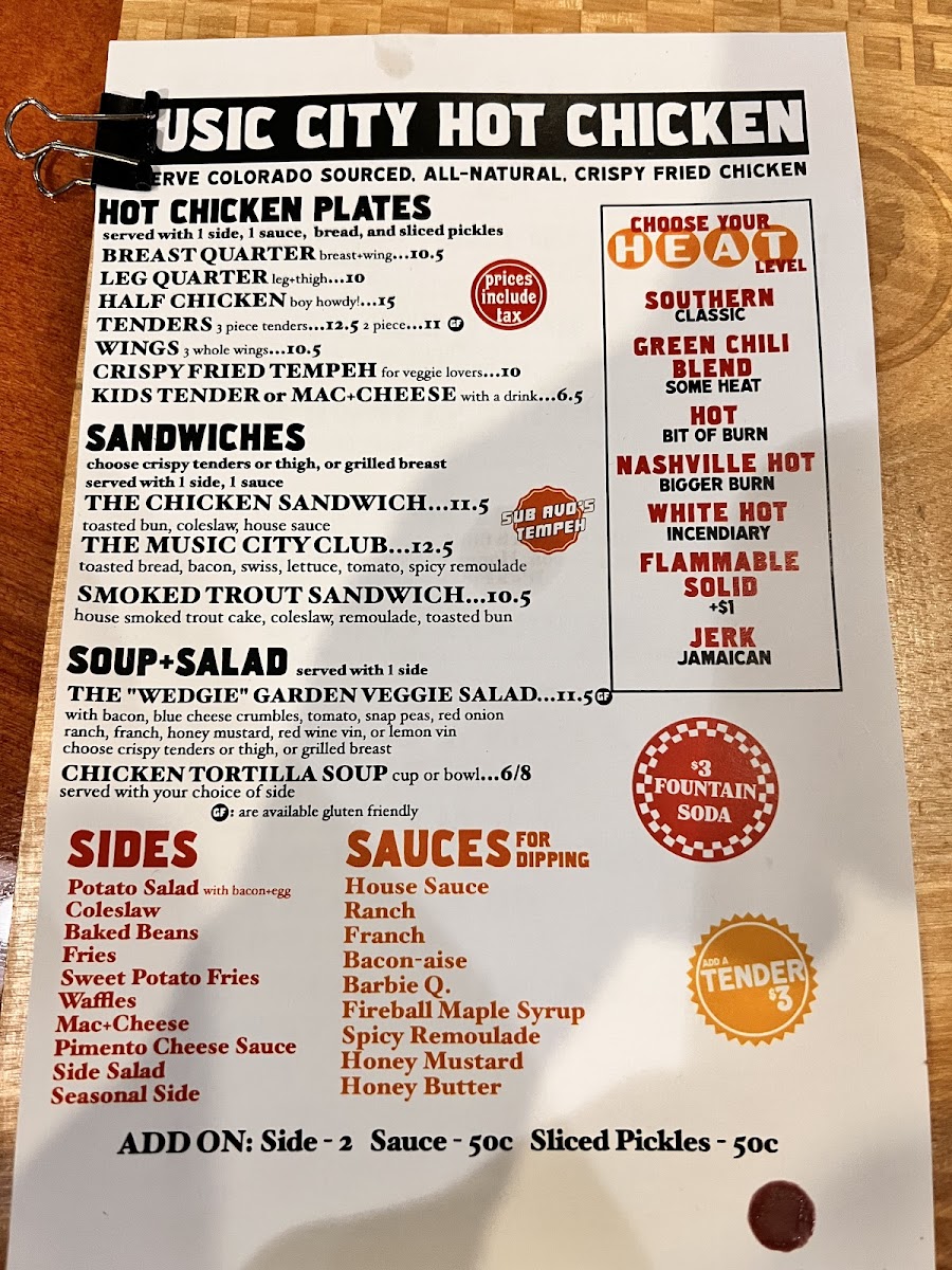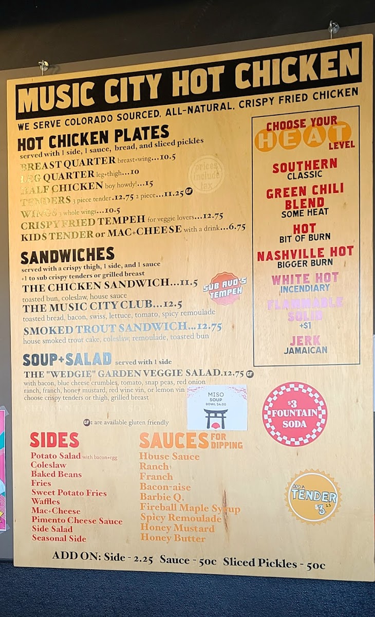 Whether you’re stopping by for a quick bite after work or enjoying a weekend meal with friends, Music City Hot Chicken promises an unforgettable experience with every visit. Join our patrons who have declared this as some of the best chicken outside of Nashville and come taste for yourself. We assure you, with every crispy, flavorful bite, you’ll feel the beat of Music City right here in Fort Collins!